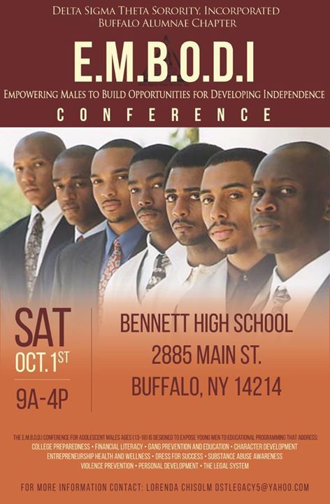 Empowering Males to Build Opportunities for Developing Independence program is designed to refocus the efforts of Delta Sigma Theta Sorority, Inc., with the support and action of other major organizations, on the plight of African-American males. EMBODI is designed to address these issues through dialogue, and recommendations for change and action.